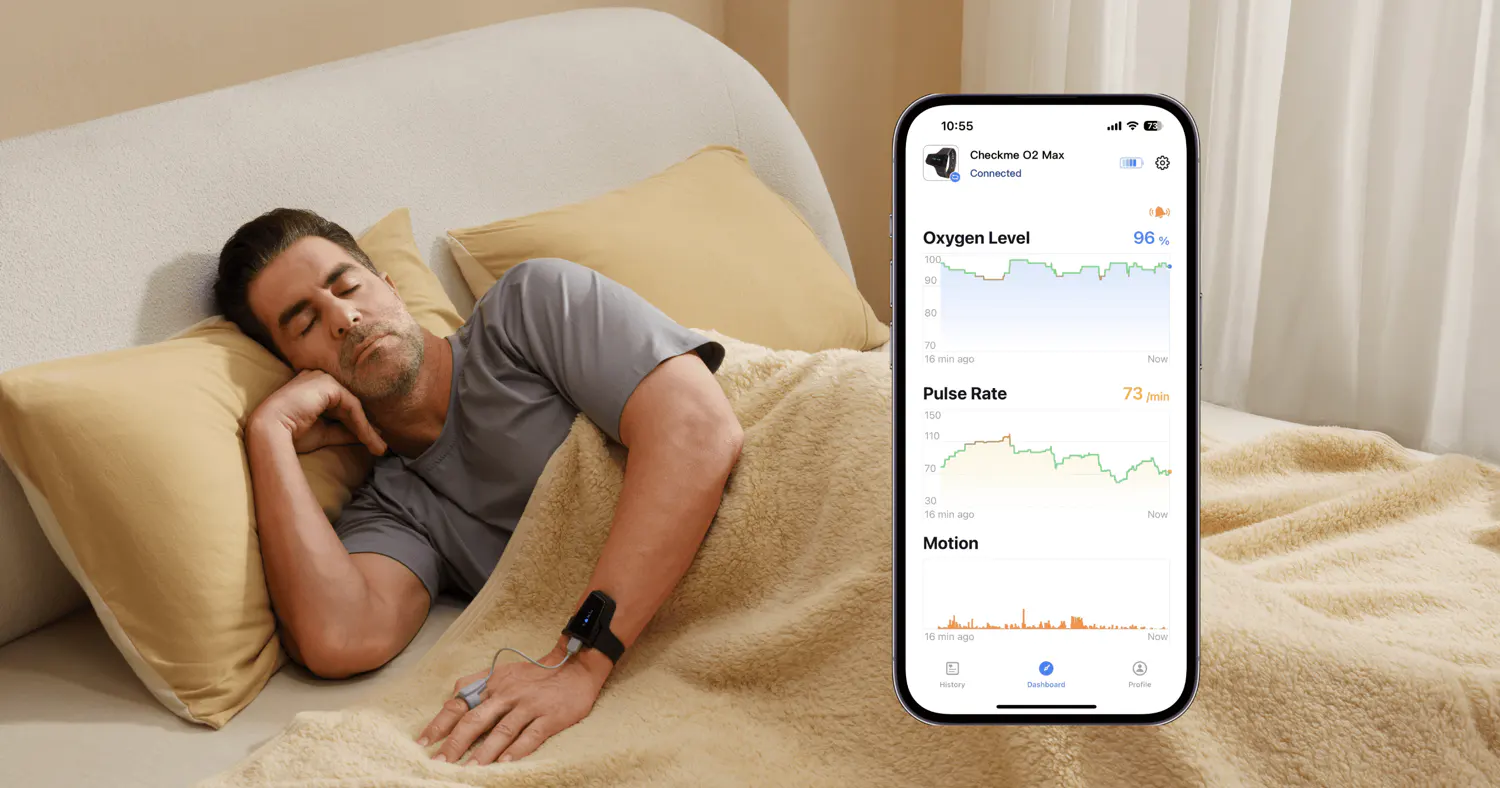 Der Wellue Viatom Checkme O2 Max ist ein hochmodernes Pulsoximeter zur kontinuierlichen Überwachung der Sauerstoffsättigung (SpO₂) und Herzfrequenz – ideal für den Einsatz bei Schlafapnoe und COPD.