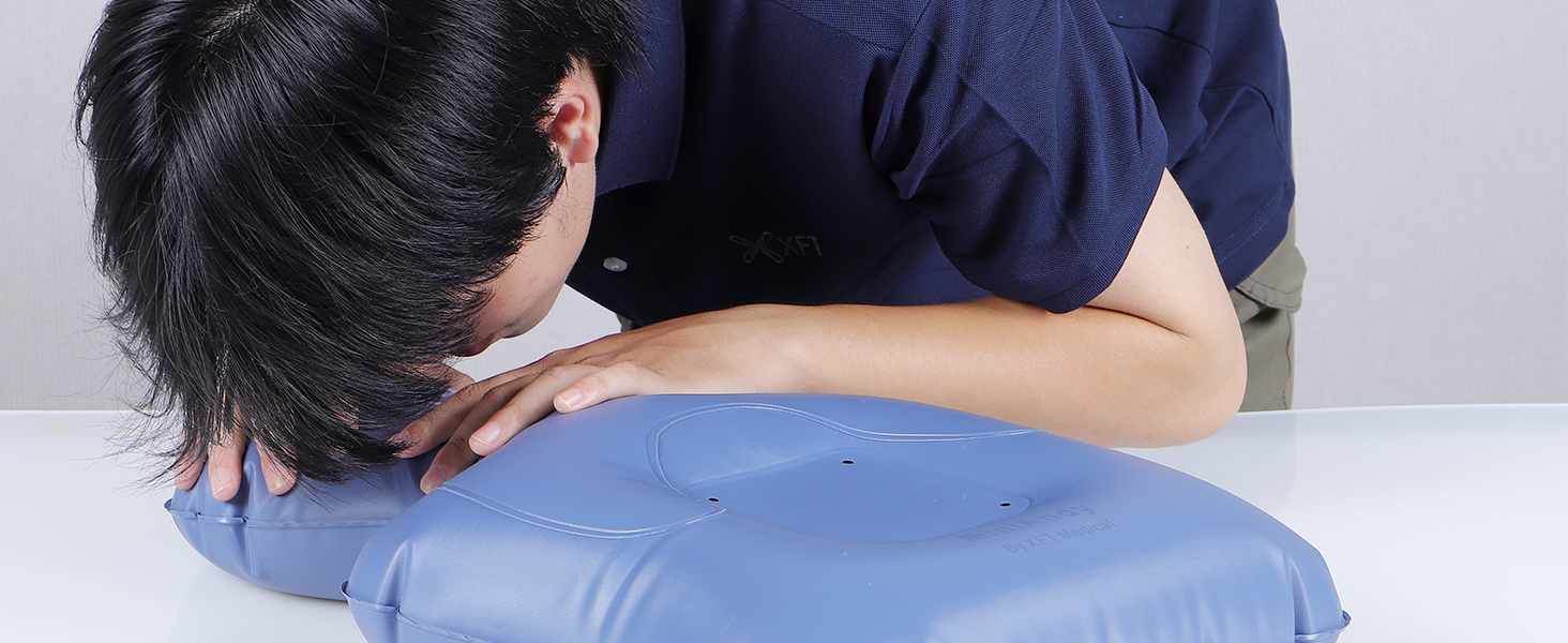 Hinweis: Für ein realistisches Kompressionserlebnis sollte die Puppe nicht zu stark aufgeblasen werden.