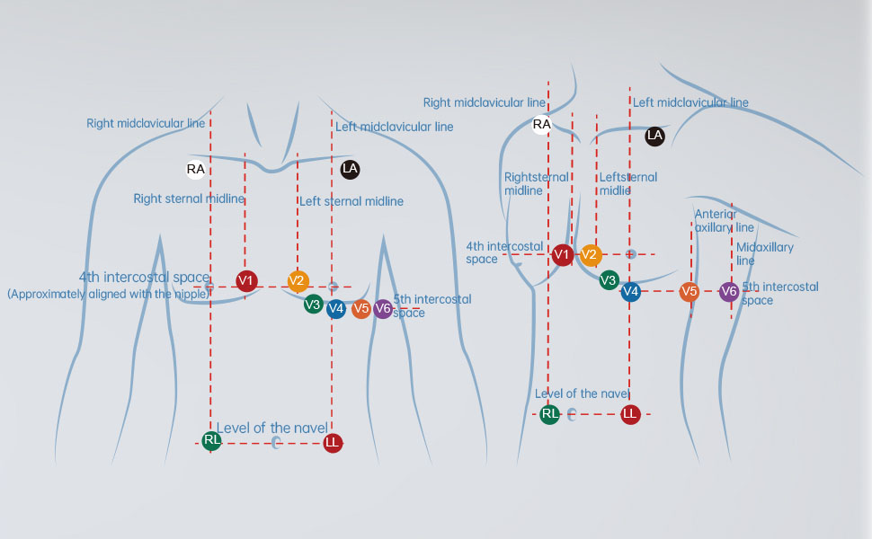 Ein 12-Kanal-EKG zeichnet gleichzeitig die elektrische Herzaktivität in zwölf verschiedenen Ableitungen auf – sechs von den Extremitäten (Einthoven I–III sowie Goldberger aVR, aVL, aVF) und sechs von der Brustwand (Wilson V1–V6). Damit lassen sich Herzrhythmus und -frequenz beurteilen, die Ausbreitung der Erregung analysieren sowie Anzeichen für Durchblutungsstörungen, Herzinfarkt, Herzinsuffizienz oder verschiedene Rhythmusstörungen erkennen.