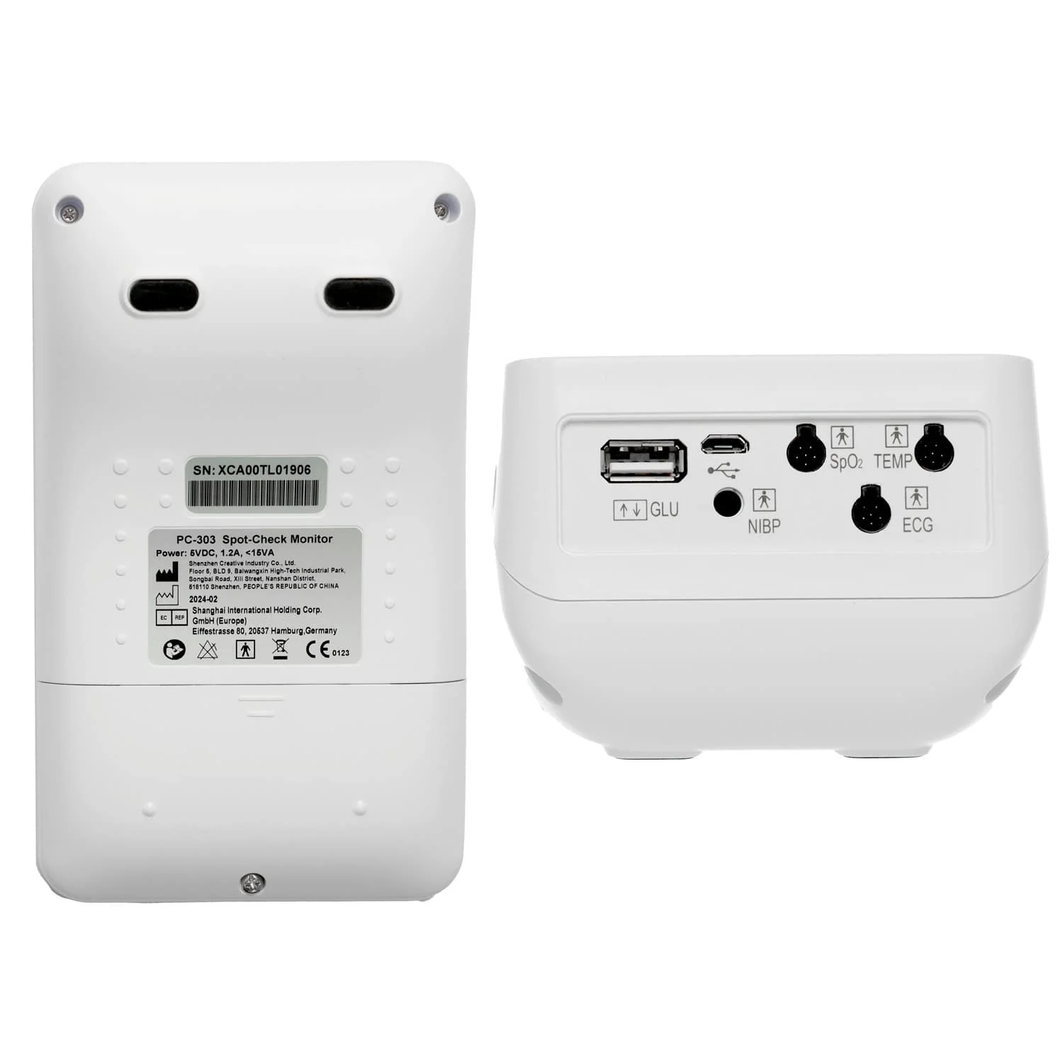 Der Multiparameter-Monitor PC-303 misst Blutdruck, SpO₂, Temperatur, Blutzucker & EKG. Mit Tasche, Manschette & Sensoren. Optional erweiterbar mit Glucometer & EKG-Modul.