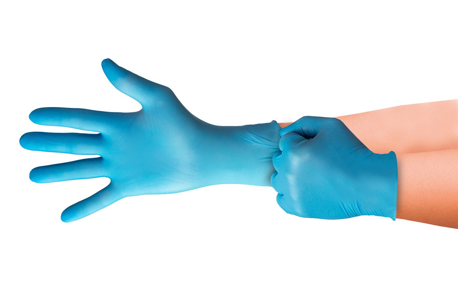 Puderfreie und latexfreie Nitril Untersuchungshandschuhe in Blau. Reißfest, hautfreundlich und ideal für Medizin, Labor, Lebensmittelverarbeitung und Industrie.
